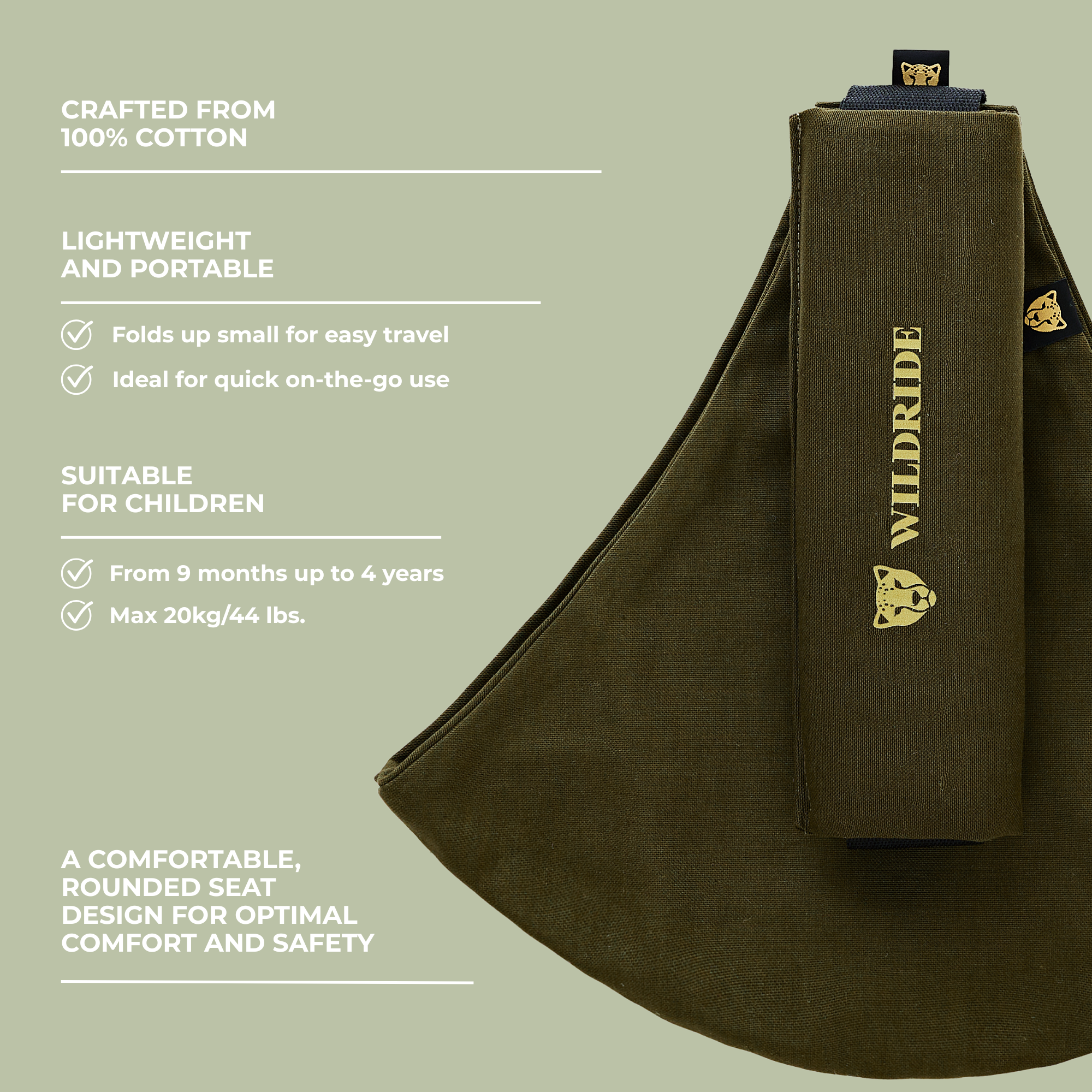 - Adapté aux tout-petits – Idéal de 9 mois à 4 ans, jusqu’à 20 kg/44 lbs. Wildride est le meilleur porte-bébé pour les parents en quête d’une solution rapide et pratique.