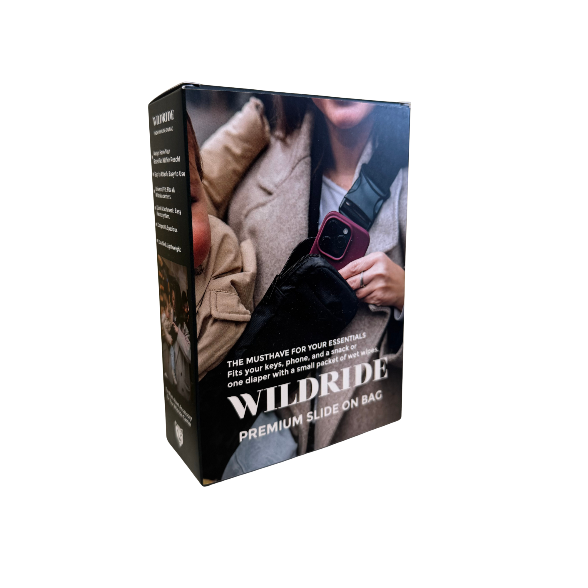 Premium packaging box with Wildride branding, designed for the Slide On Bag.