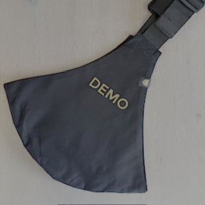 Demo version of the Black Toddler Carrier, designed for showroom and in-store demonstration. Marked with “DEMO” on the fabric for clear distinction.