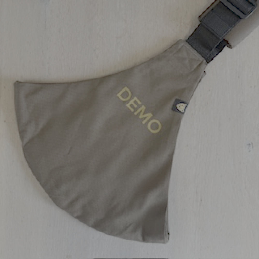 Demo version of the Coffee toddler carrier, designed for showroom and in-store demonstration. Marked with “DEMO” on the fabric for clear distinction.