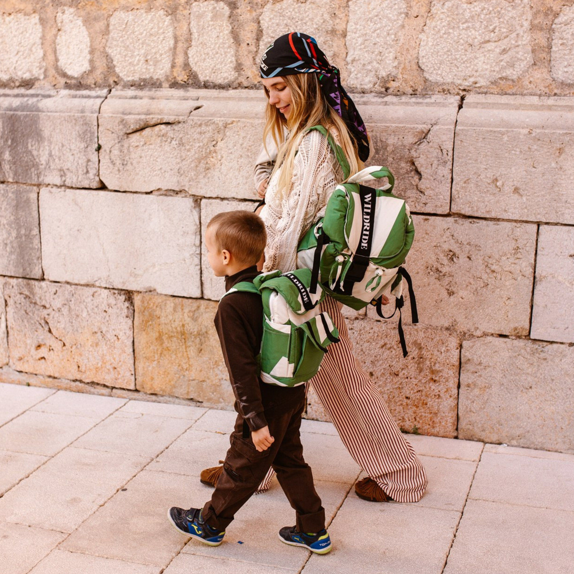 Mantenha-se organizada, com as mãos livres e pronta para tudo – a Wildride mochila reciclada para adultos Gráfico Verde é a mochila ideal para o dia a dia das mães.